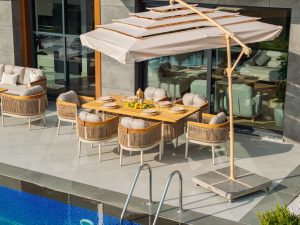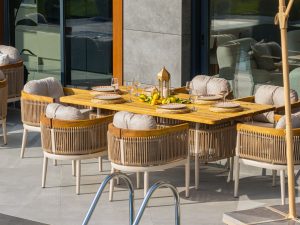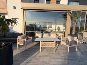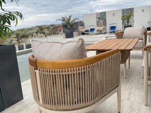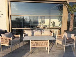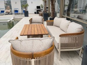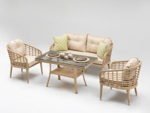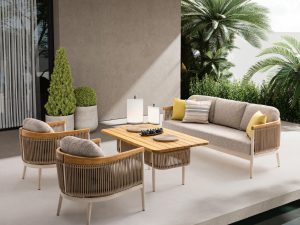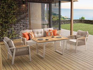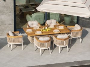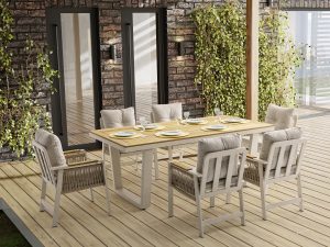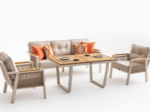 Set MINERVA 3+1+1+masa .aluminiu si lemn de Iroko